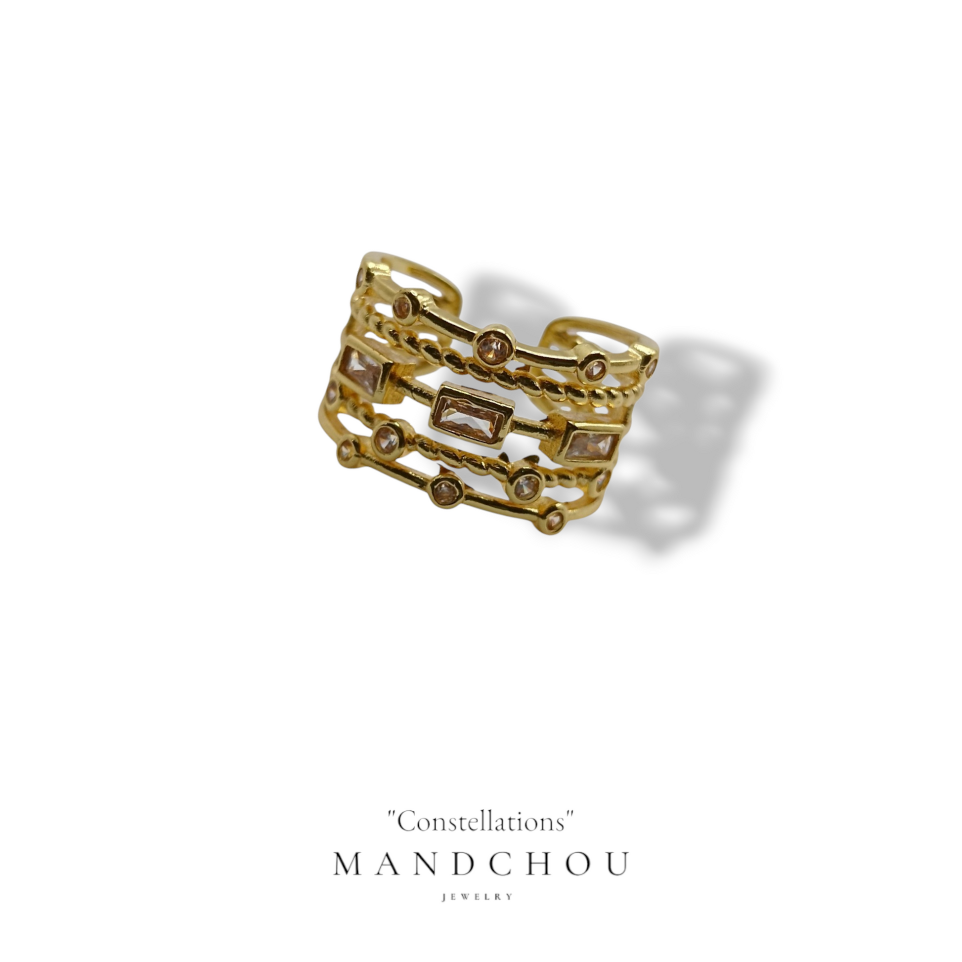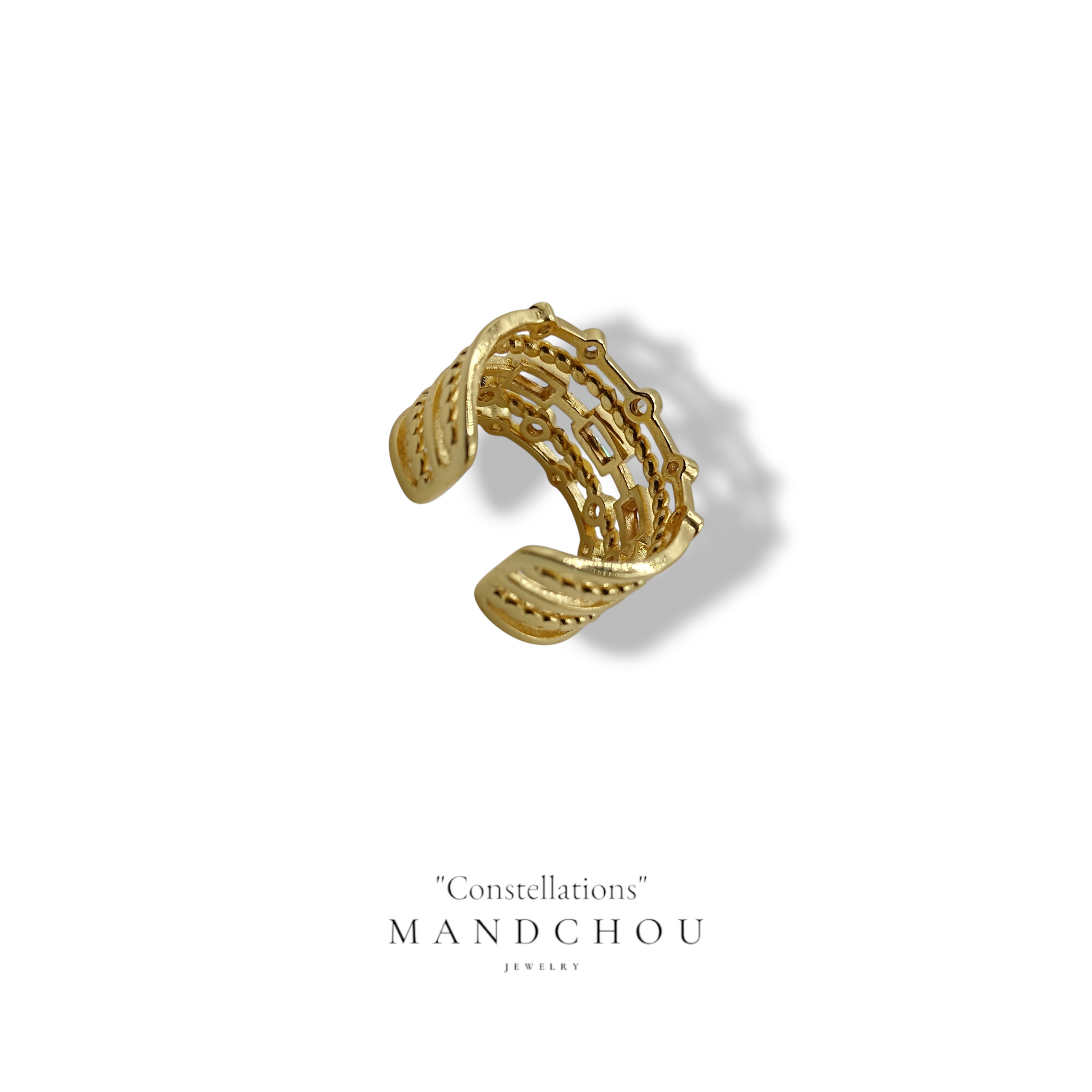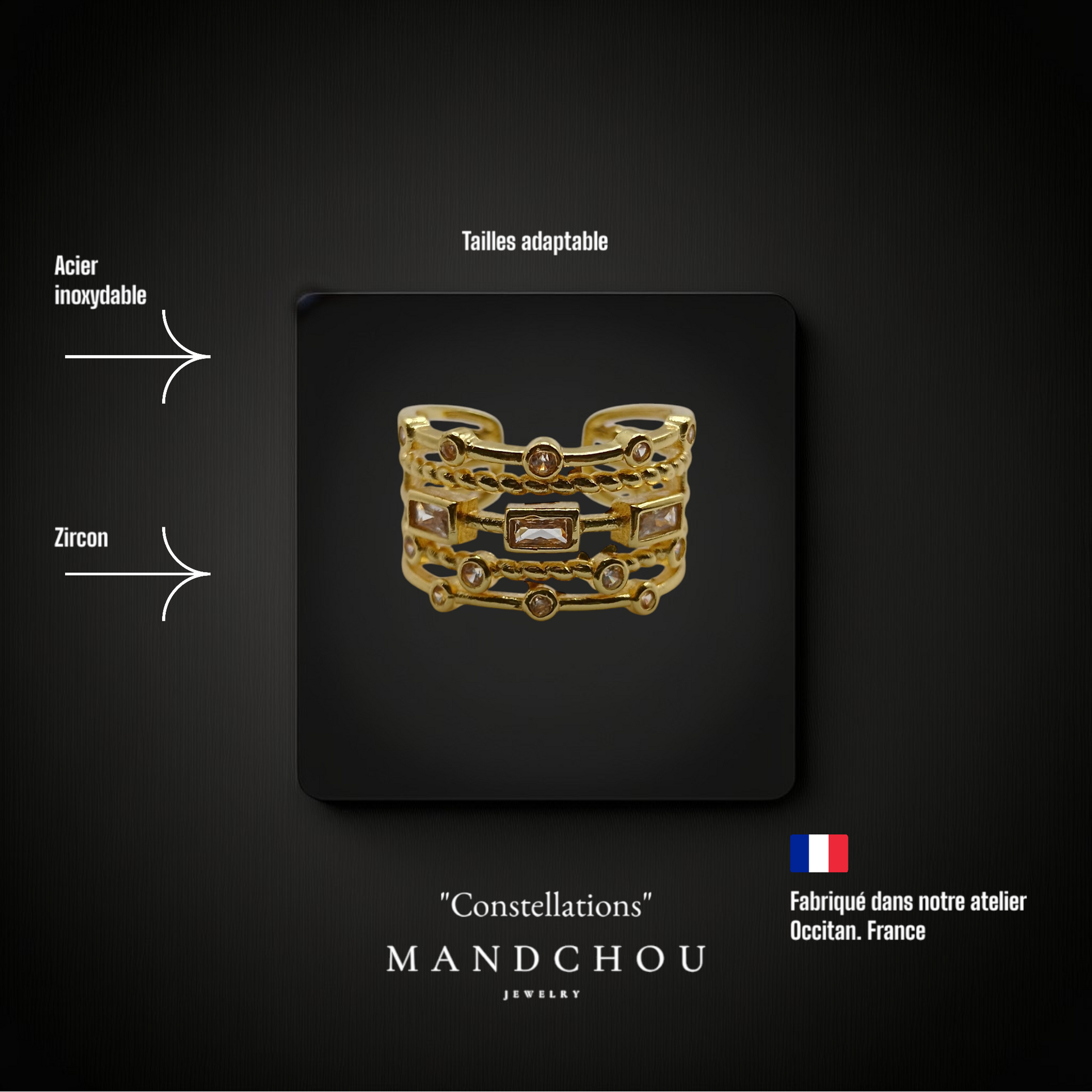 Découvrez la bague Constellation, une véritable œuvre d'art destinée à sublimer votre élégance naturelle. Fabriquée avec un soin inégalé dans notre atelier d'Occitanie, cette pièce fait preuve d'un savoir-faire exceptionnel et d'une attention portée aux détails. Notre acier inoxydable revêtue d'un somptueux plaquage en or 24 carats, la bague Constellation offre un éclat raffiné qui embellira chaque instant de votre quotidien.