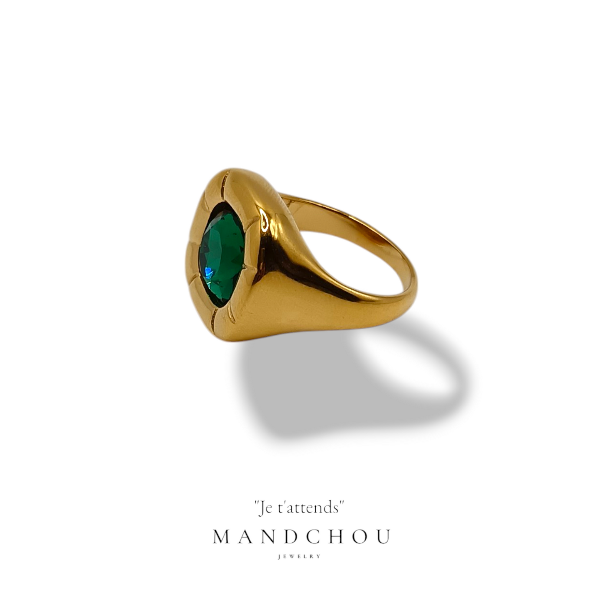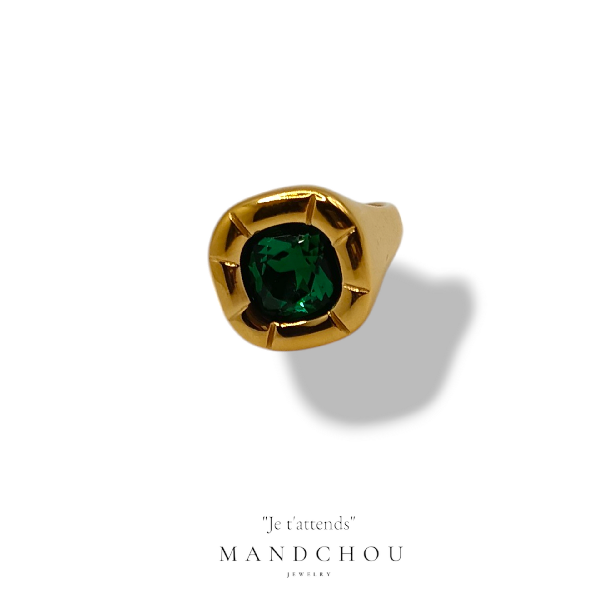 Découvrez la bague "je t'attends", un bijou qui allie élégance et simplicité. Son design intemporel, rehaussé d'un cœur vert en cristal couleur émeraude, ne manquera pas de captiver tous les regards.
