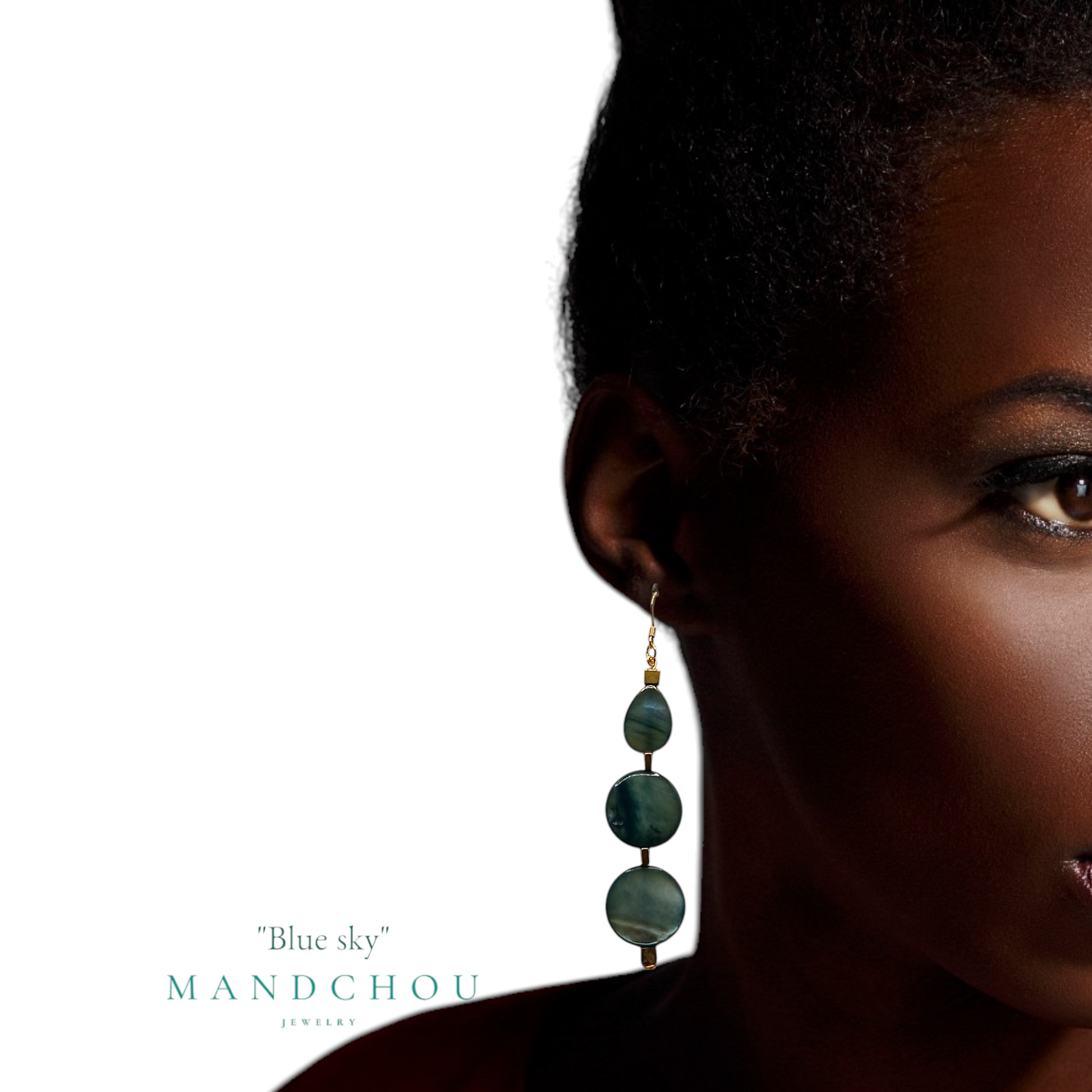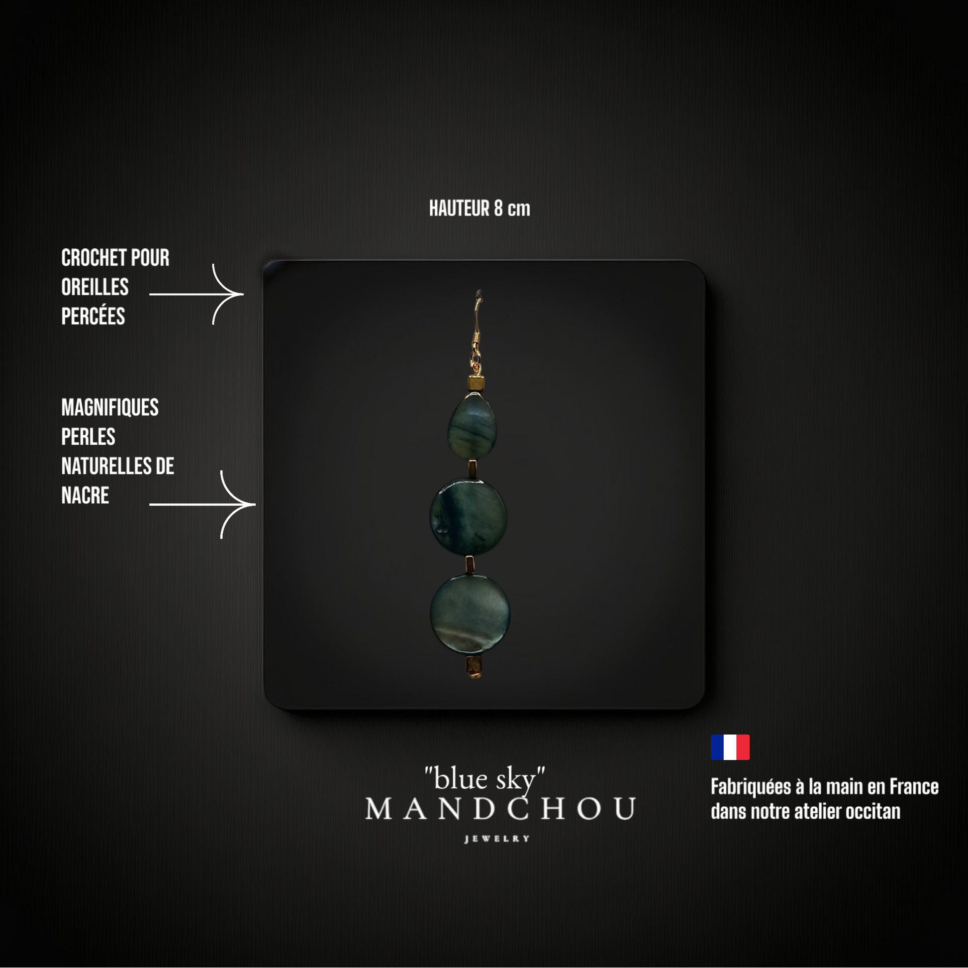 Découvrez l'élégance des boucles d'oreilles "blue sky", un véritable bijou artisanal. Créées avec soin dans notre atelier occitan, ces boucles d'oreilles sont composées de nacre 100% naturelle, offrant une brillance incomparable.