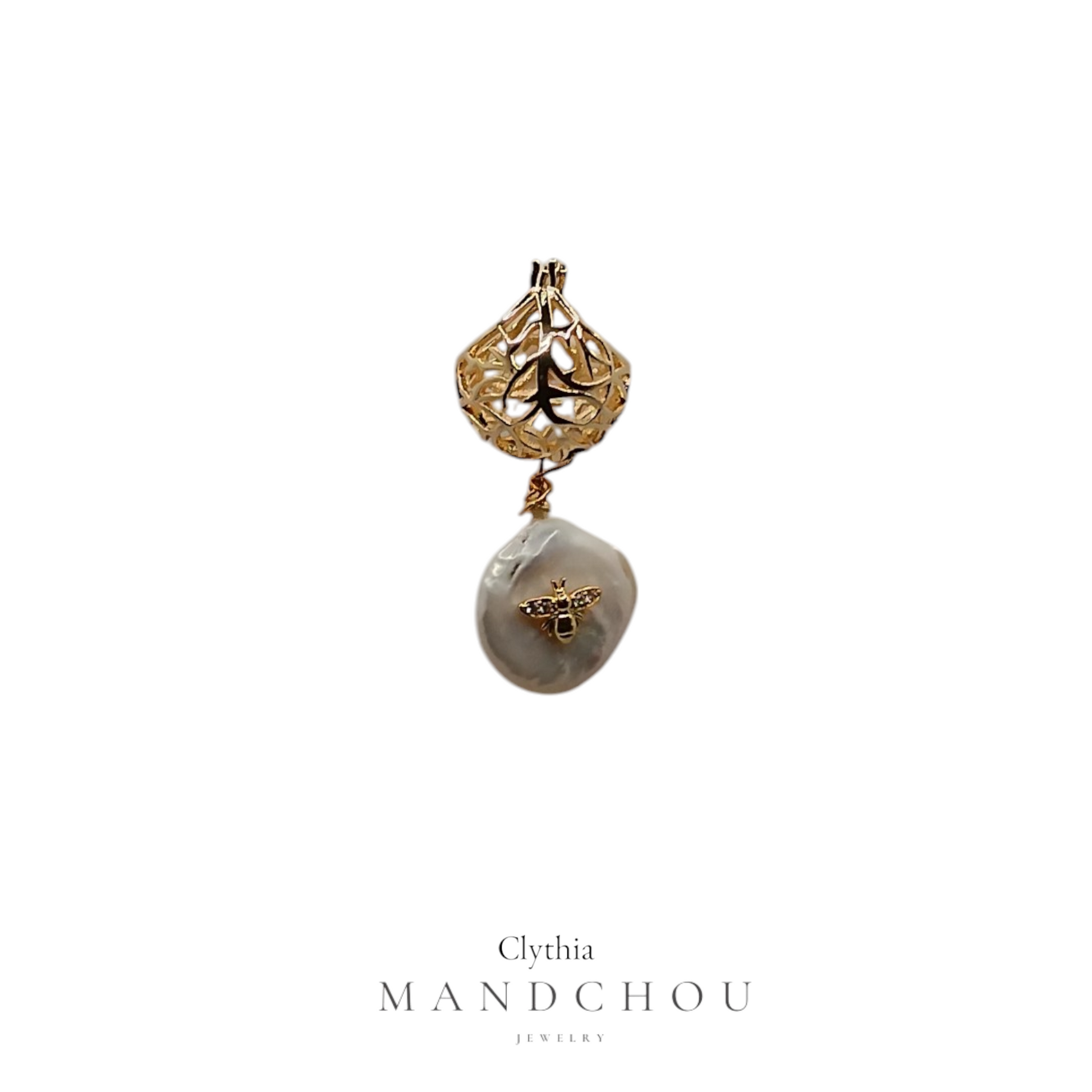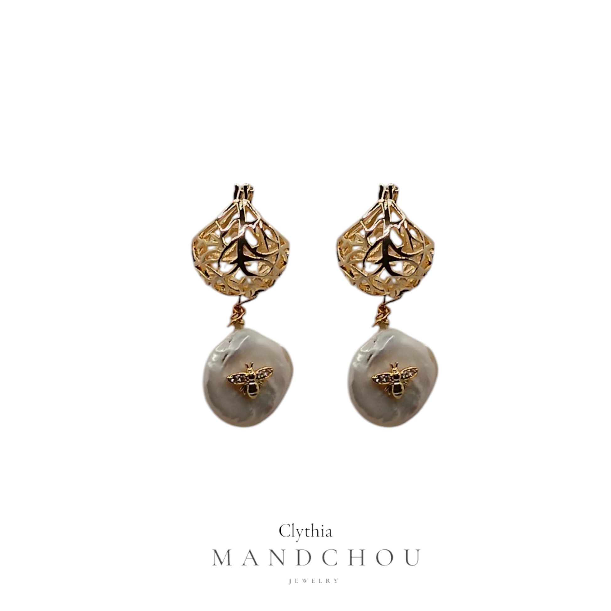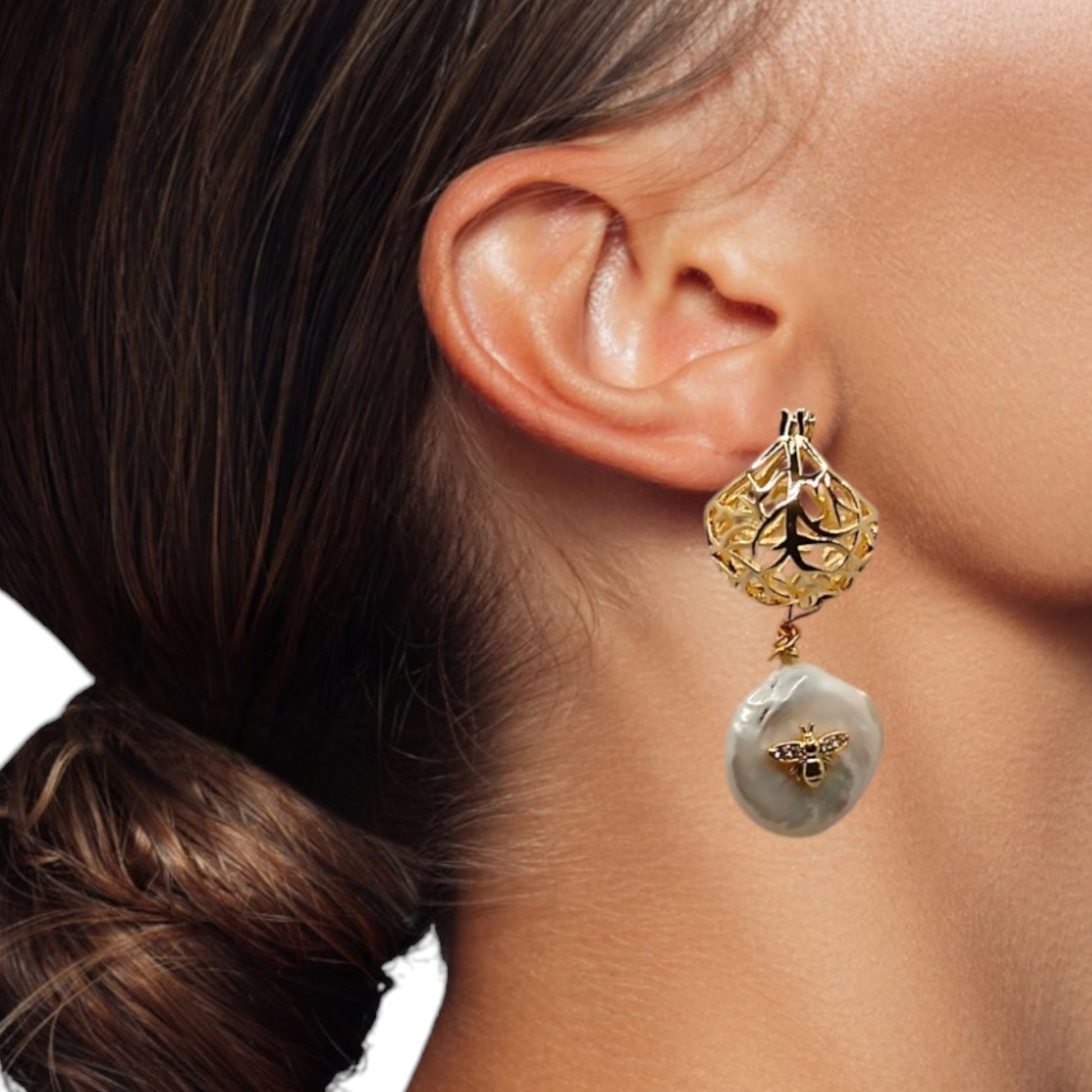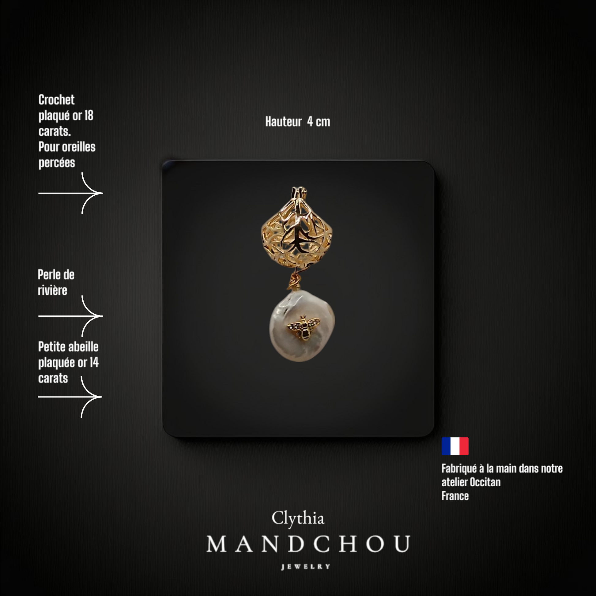 La petite abeille plaquée or, délicatement intégrée, évoque la nature tout en ajoutant une note artistique à ce bijou d'exception. Surmontées d'une perle plaquée or ajourée, ces boucles d'oreilles apportent une luminosité subtile, attirant le regard et soulignant votre style unique.