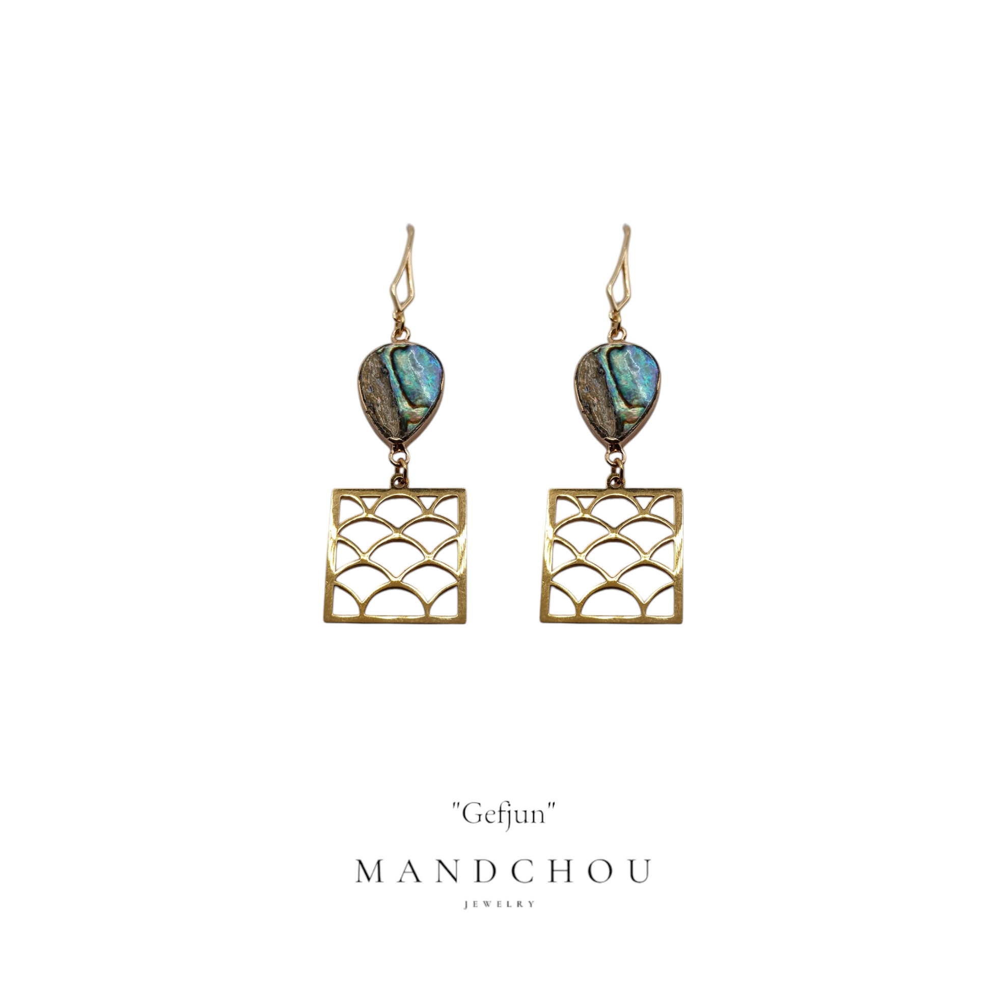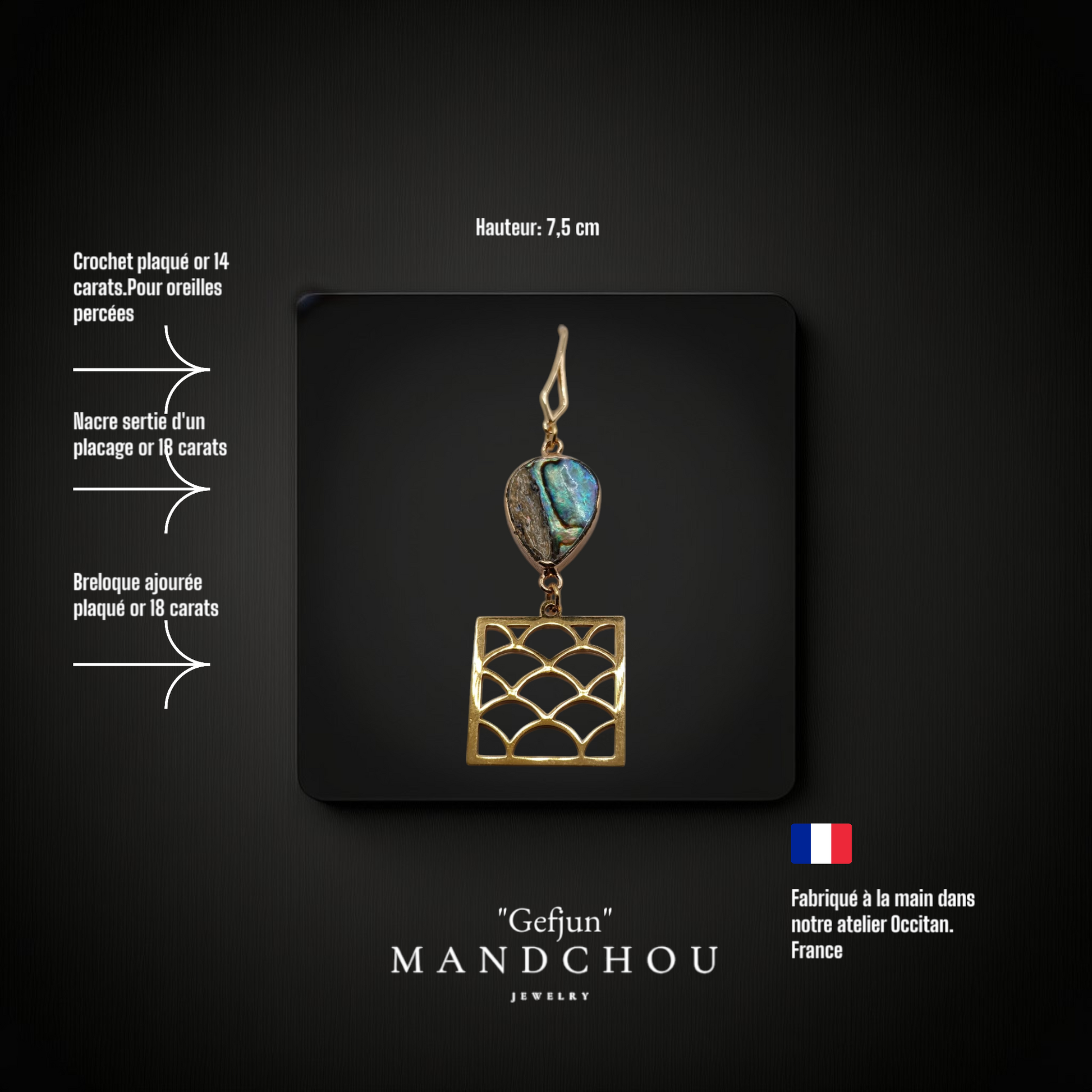 Découvrez l'élégance intemporelle avec les boucles d'oreilles "Gefjun". Chaque pièce est une œuvre d'art, syntonisant harmonieusement la splendeur de la nacre multicolore éblouissante. Ces boucles d'oreilles offrent non seulement un éclat fascinant, mais elles révèlent également un savoir-faire exceptionnel.
