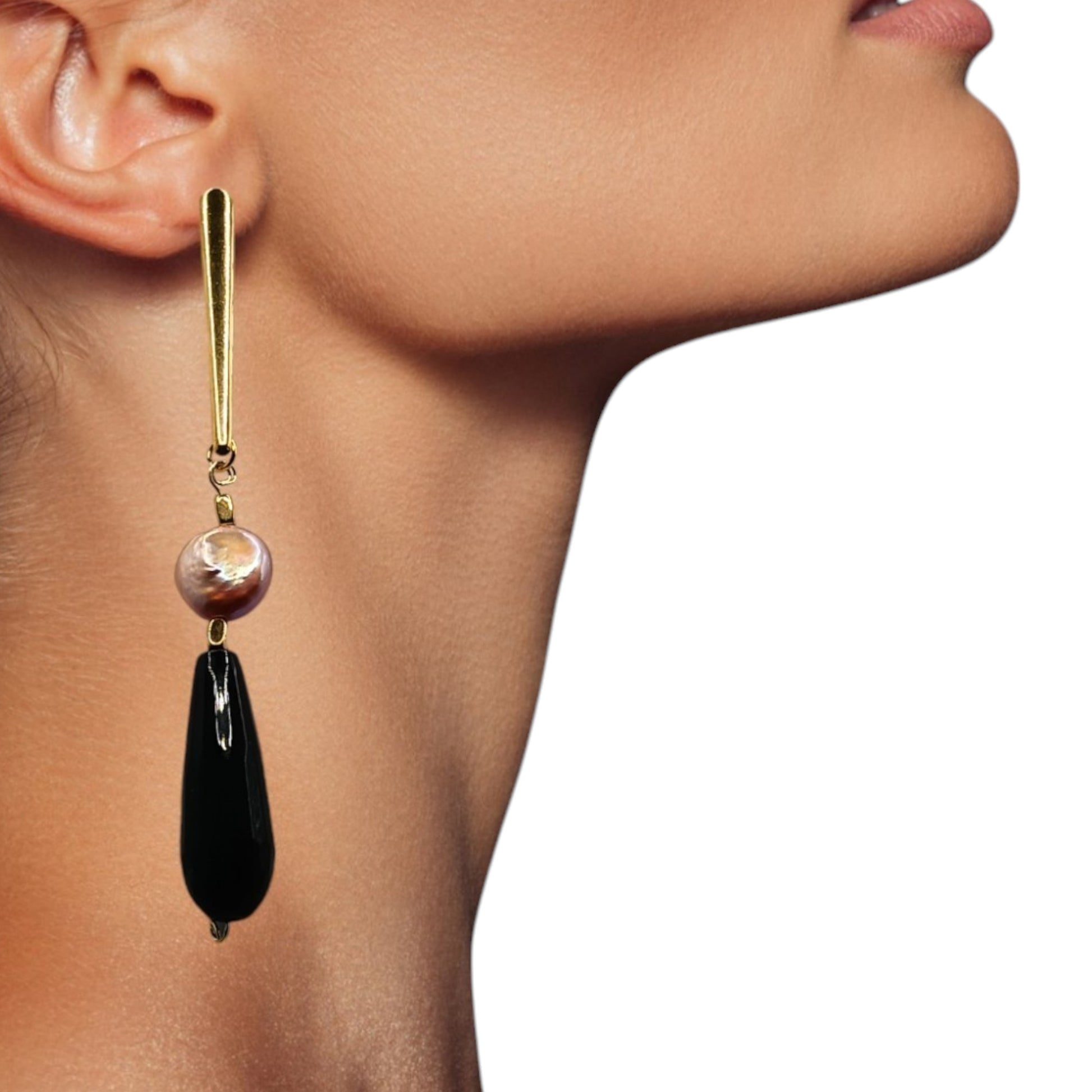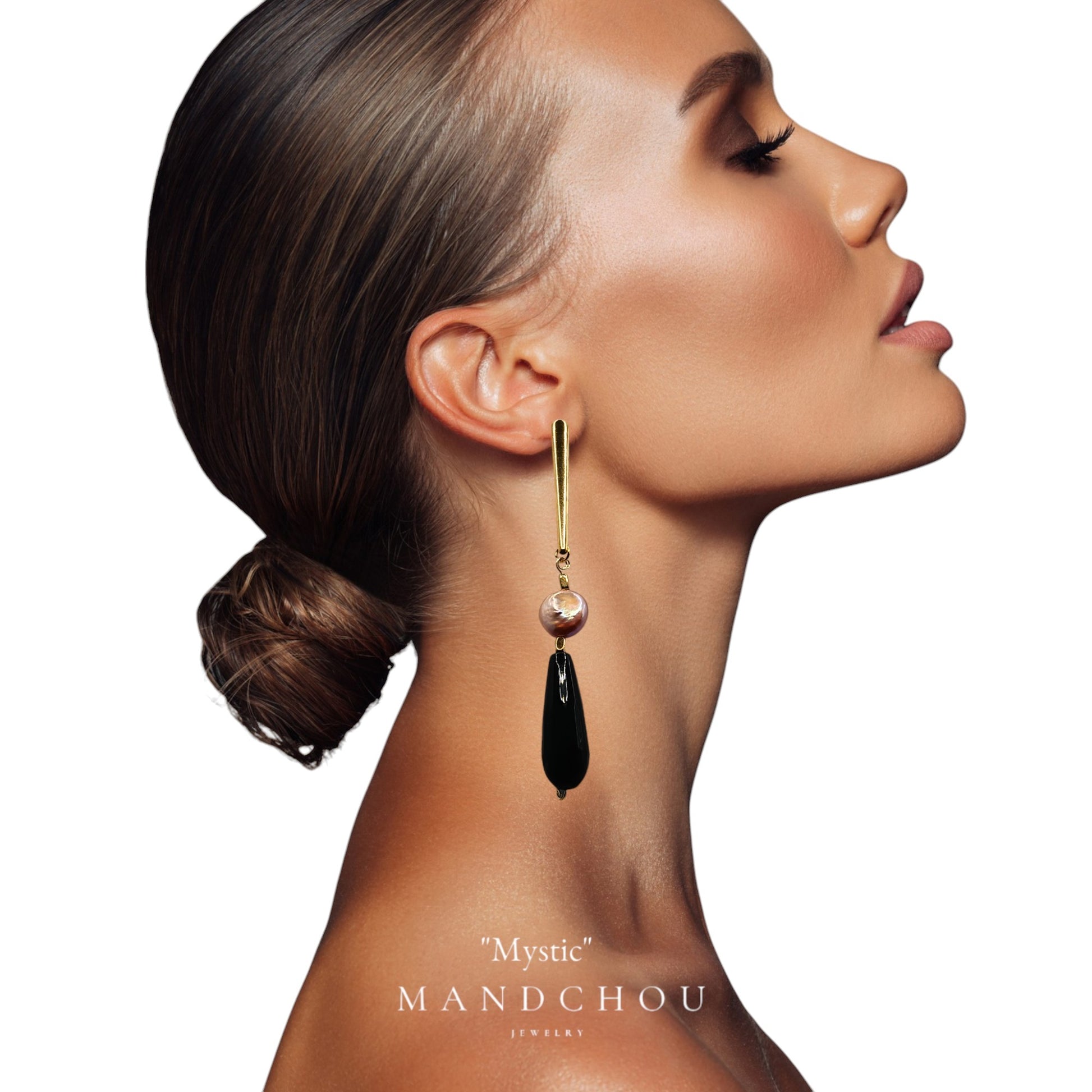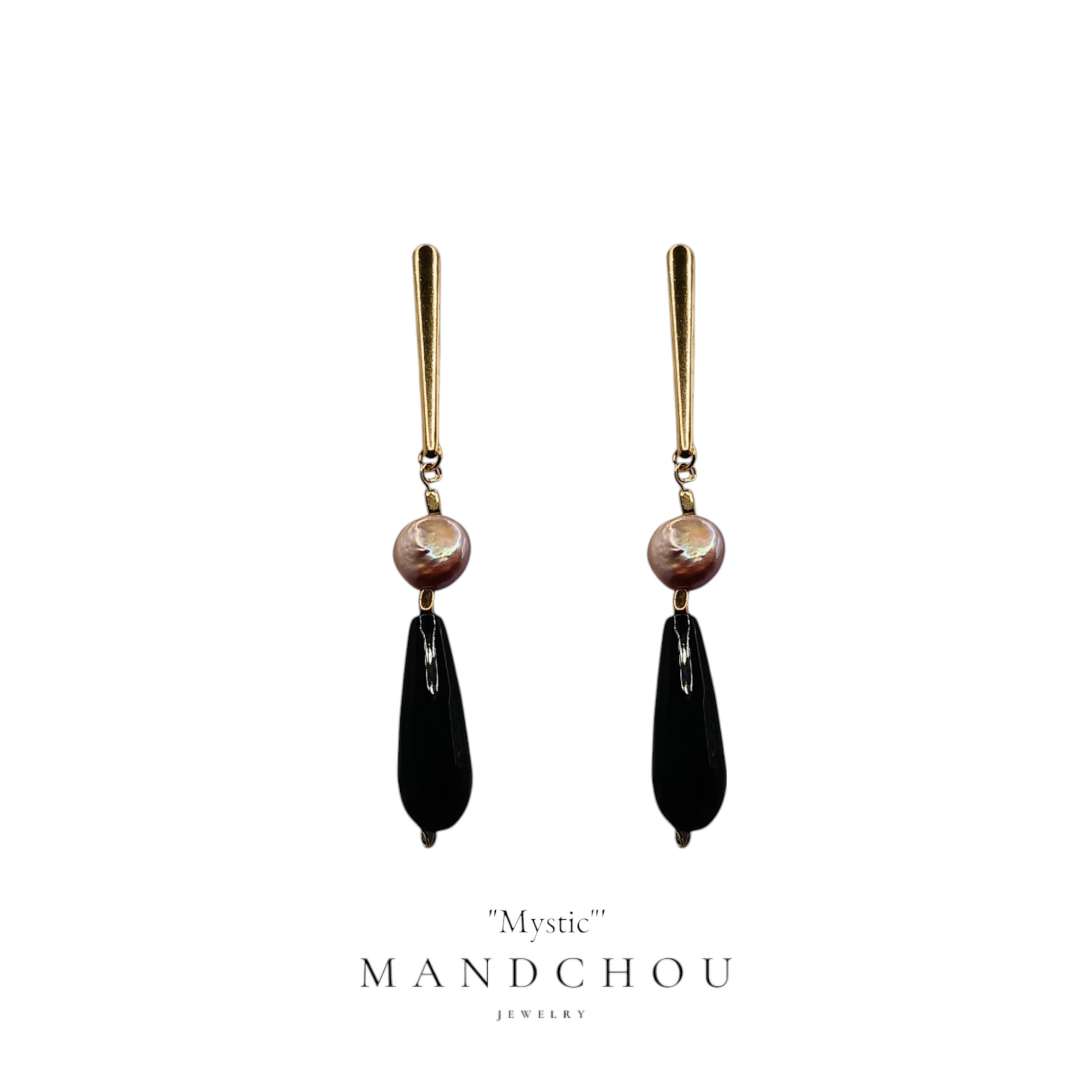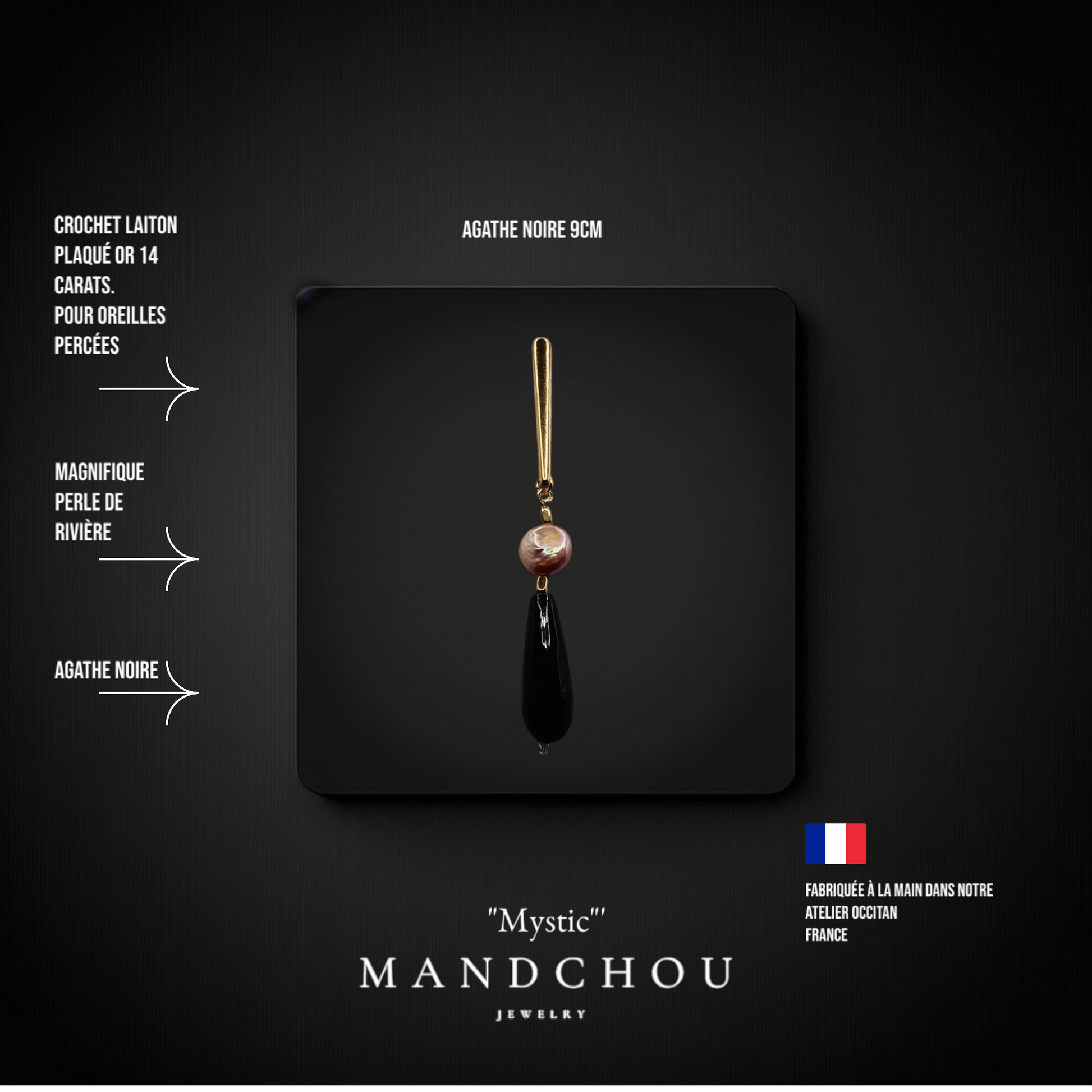 L'agate noire, sophistiquée et mystérieuse, agit comme un parfait complément à la perle, créant un équilibre visuel captivant. Cette nuance profonde apporte un contraste saisissant et souligne le caractère unique de chaque paire. Porter les boucles d'oreilles "Mystic", c'est choisir d'exprimer sa personnalité à travers un accessoire de luxe qui ne passera jamais inaperçu.