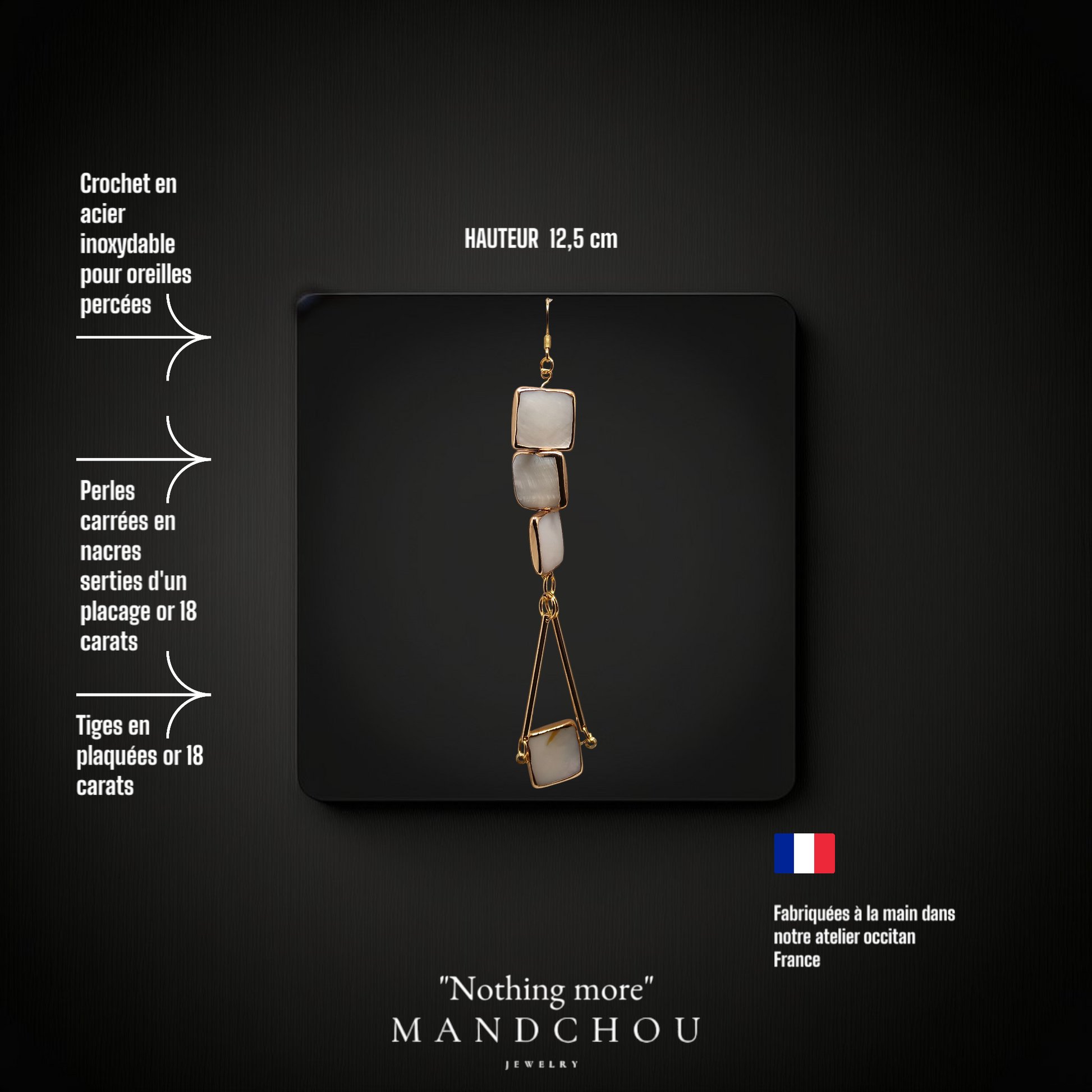 Boucles d'oreilles "Nothing more" sont des bijoux fantaisie uniques et précieux avec une sculpture de trois magnifiques nacres plaquées or.