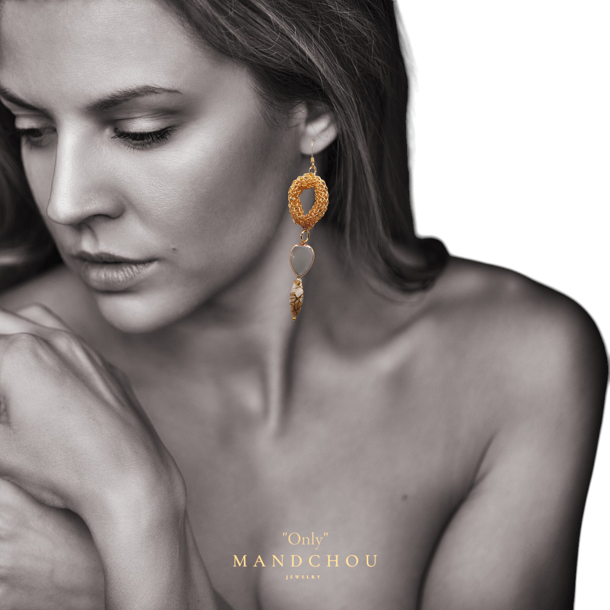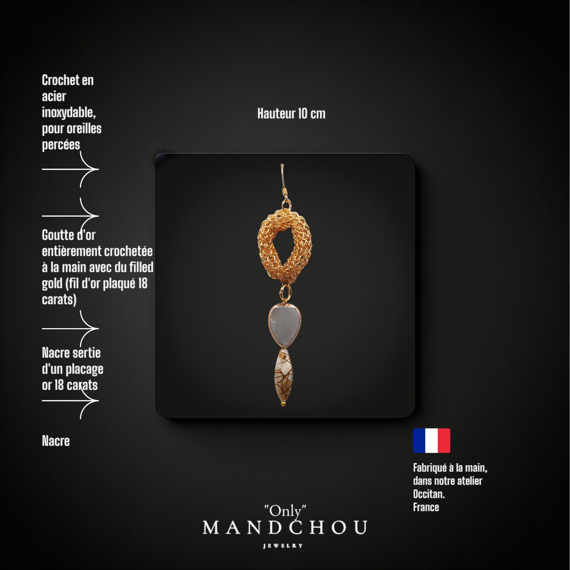Les boucles d'oreilles "Only" se distinguent par leur somptueuse ornementation en fil d'or crocheté de 18 carats, apportant une brillance éclatante et une subtilité séduisante. Associées à de délicates perles de nacre, elles captivent le regard et illuminent votre visage avec une touche de sophistication.