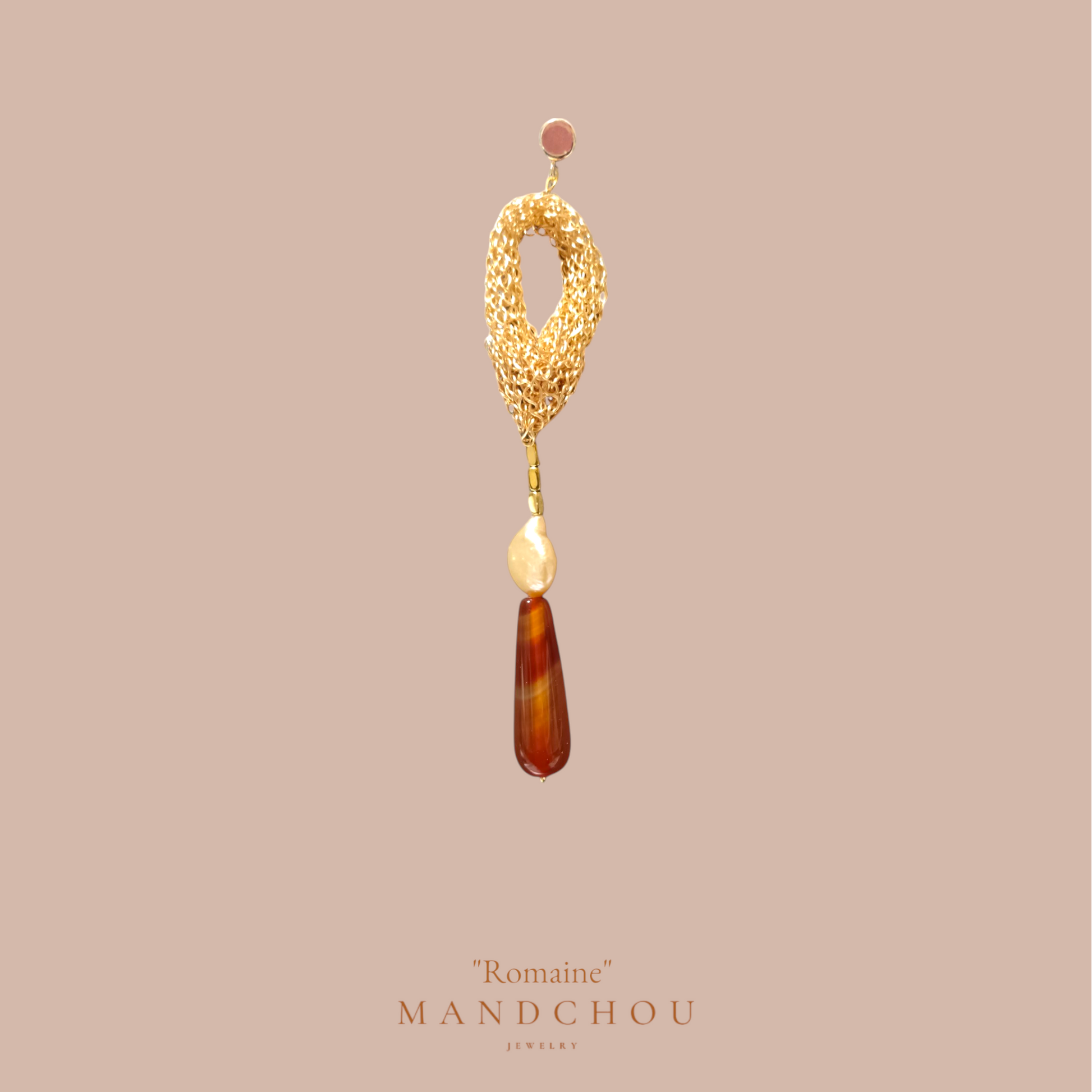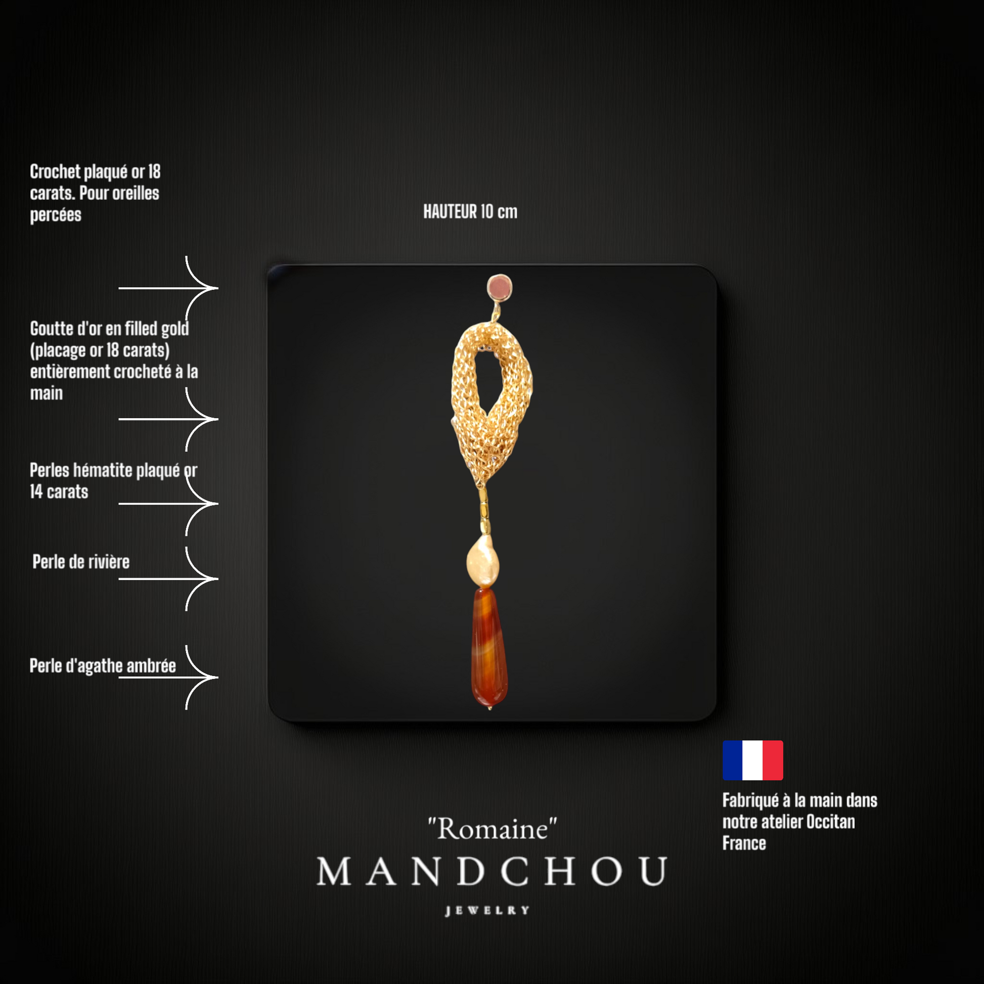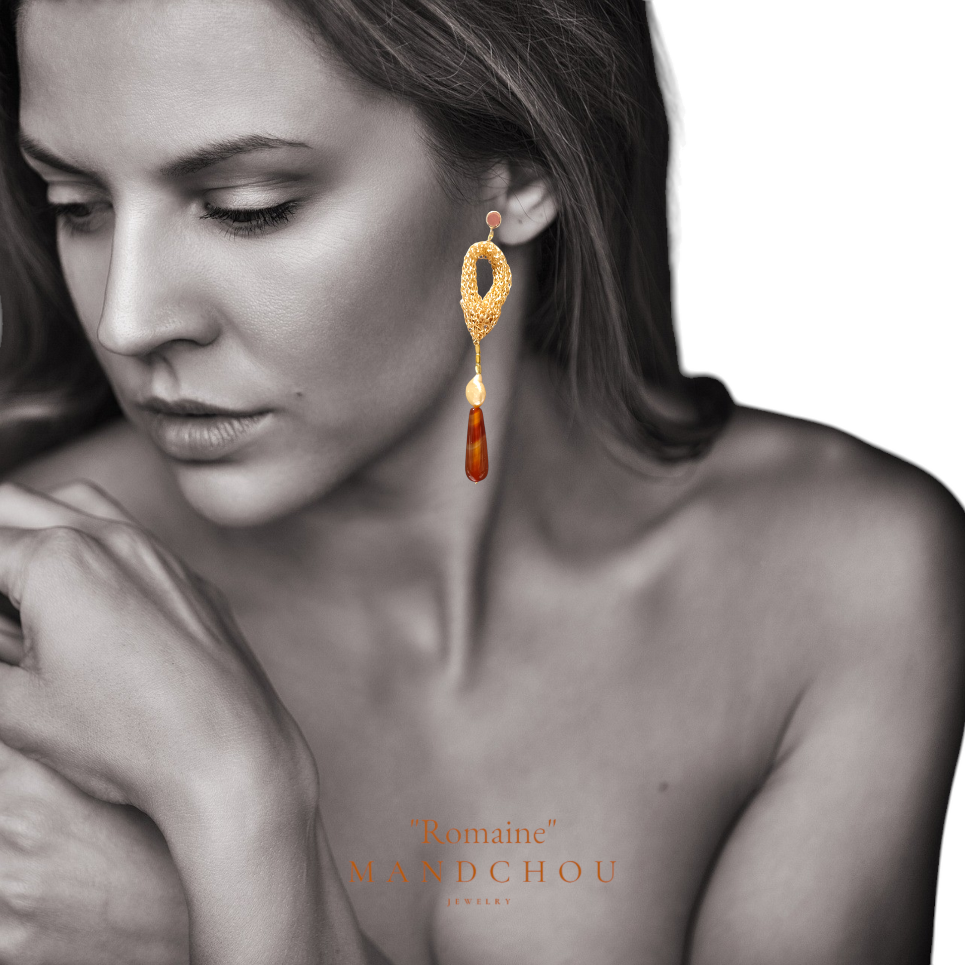 Enrichies d'une agate ambrée, elles offrent une harmonie parfaite entre la douceur des formes et la richesse des couleurs. La finition en or 24 carats rehausse le tout, apportant une note de luxe indéniable.