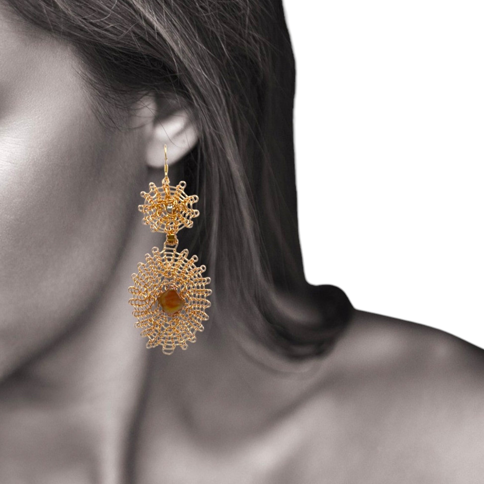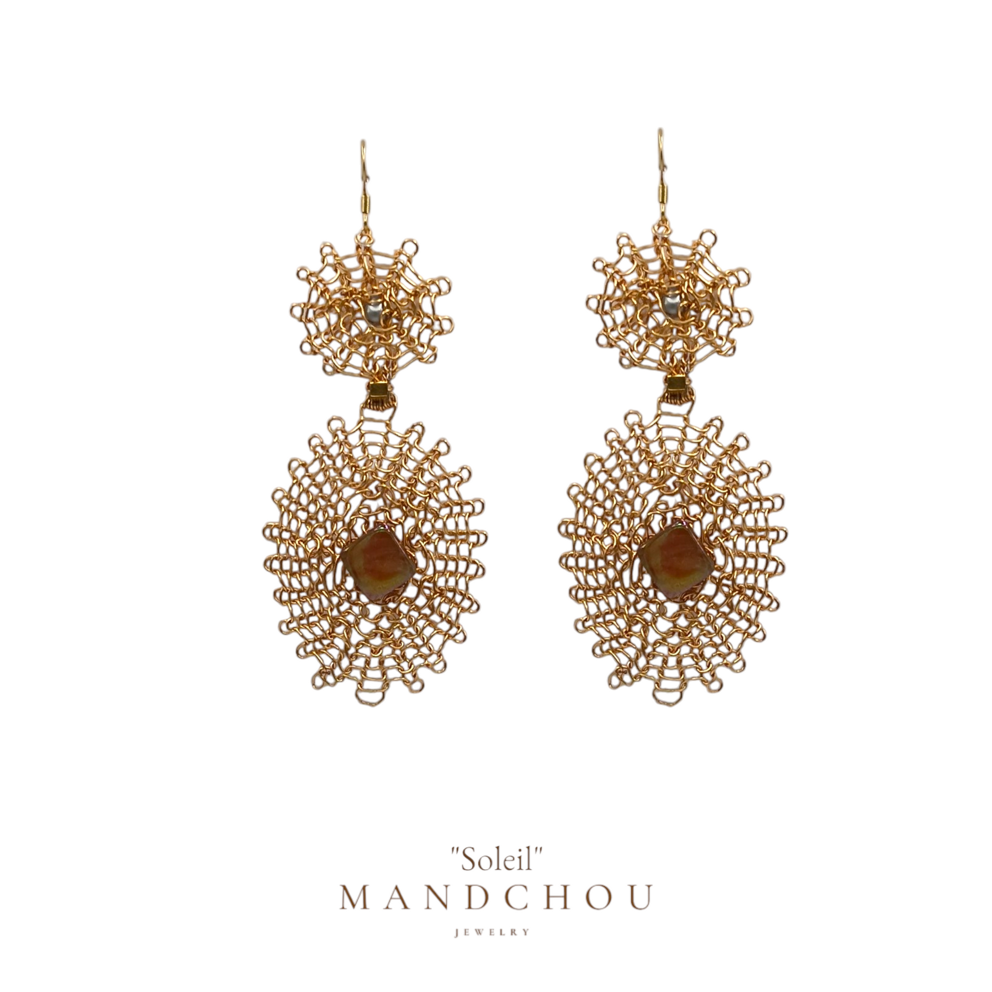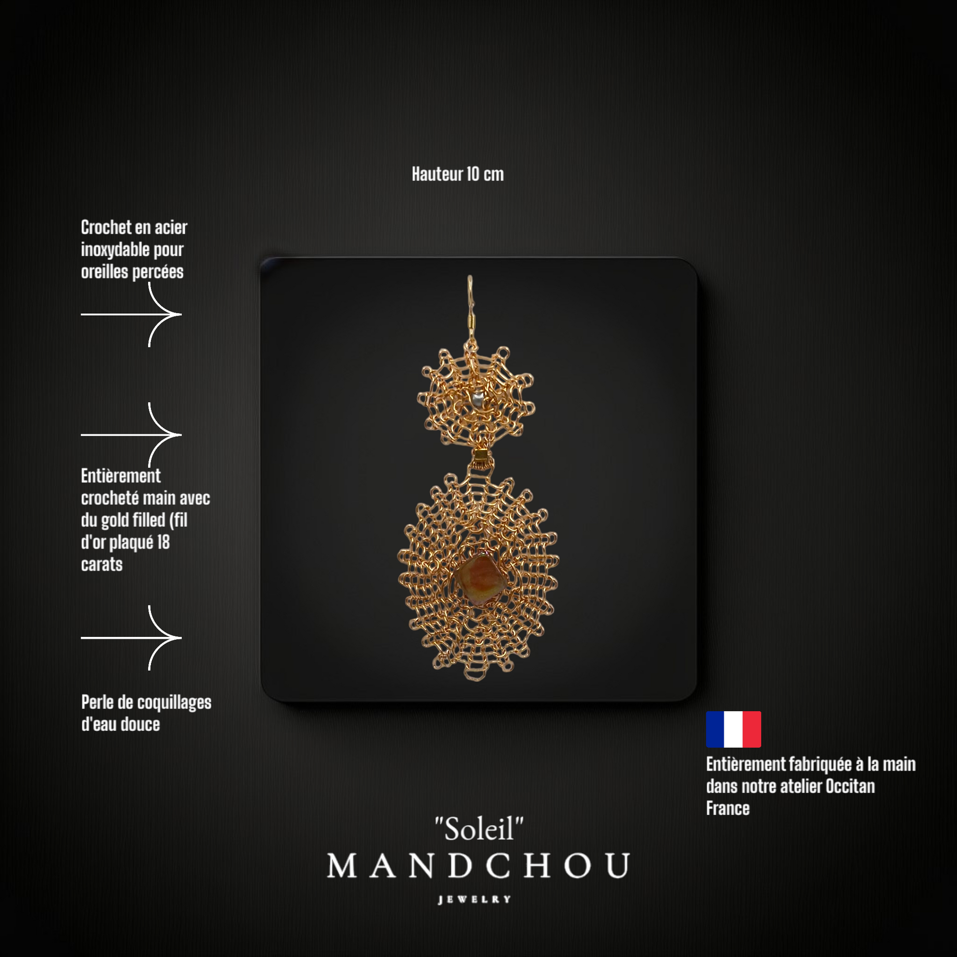 Découvrez l'élégance intemporelle des boucles d'oreilles "Soleil". Chaque pièce est soigneusement crochetée à la main, témoignant d'un savoir-faire artisanal inégalé qui élève chaque bijou au rang d’œuvre d’art.