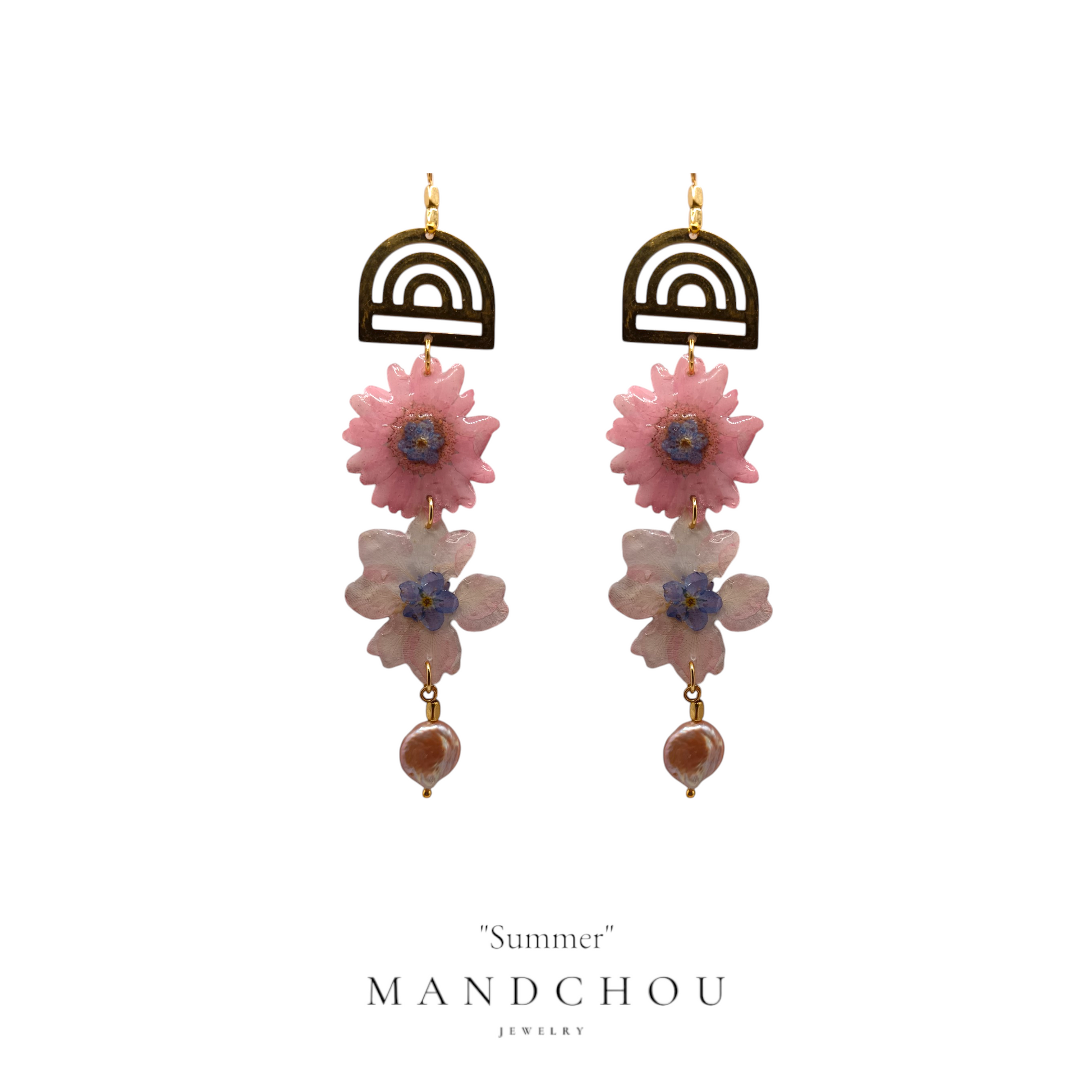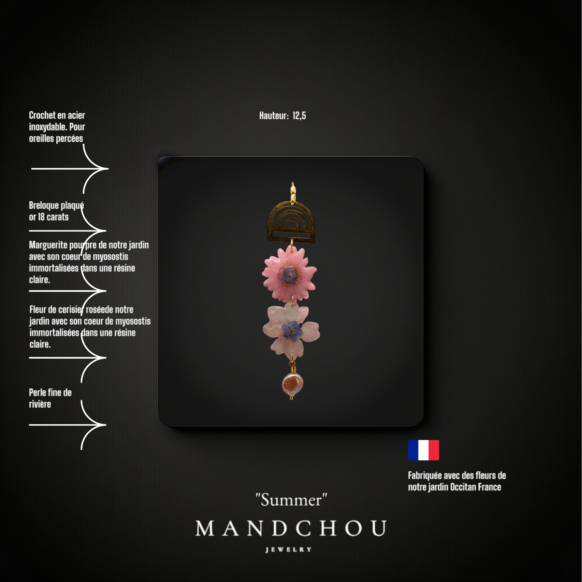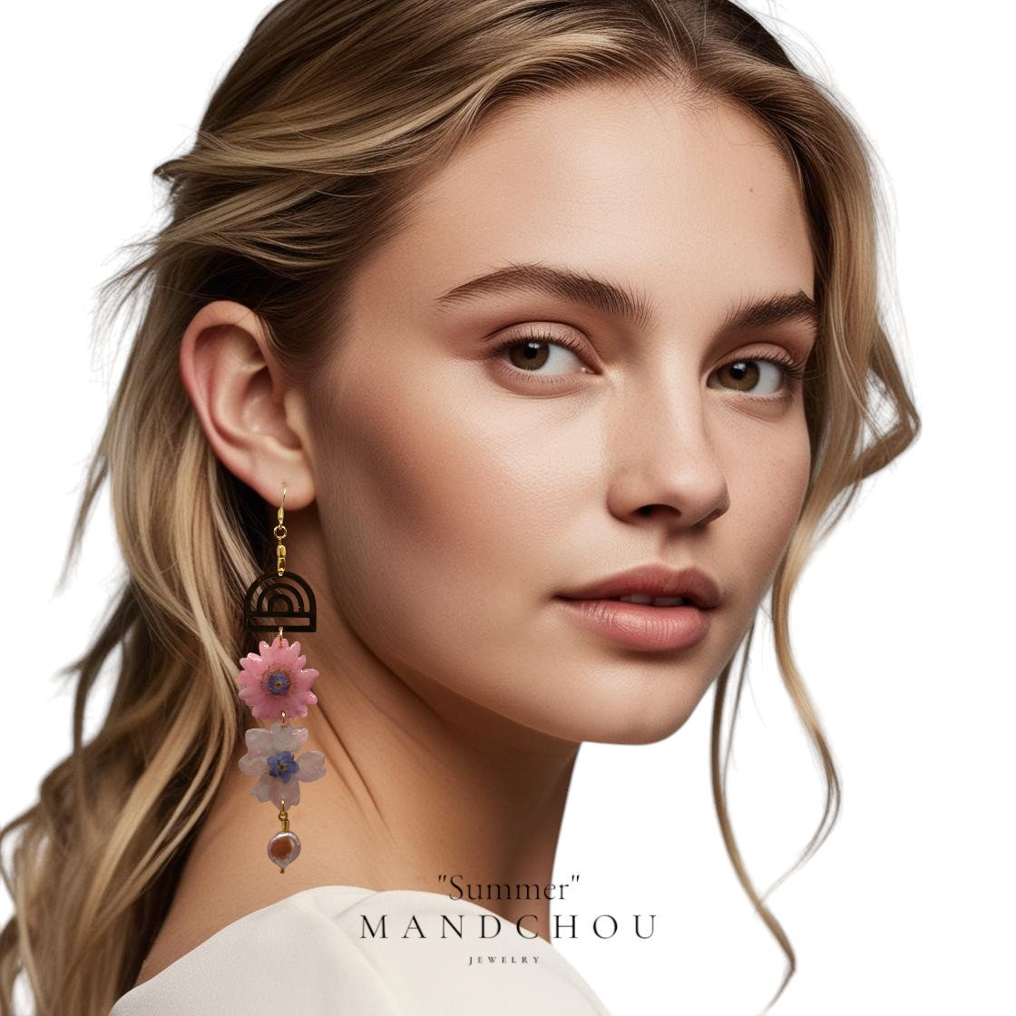Plongez dans un univers bucolique et romantique avec nos boucles d'oreilles "Summer". Chaque paire est conçue pour vous emmener au bout de la nuit, vous enveloppant d'une délicate magie florale.