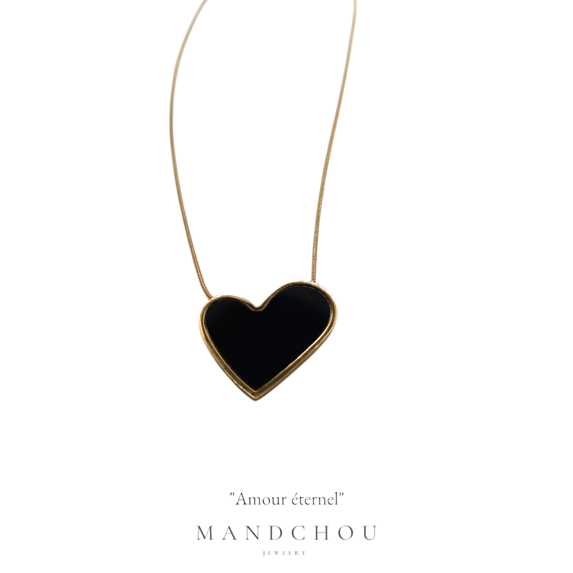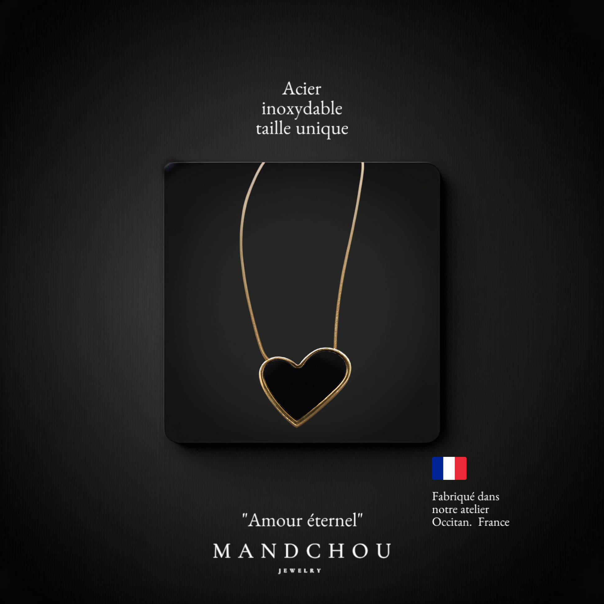 La chaîne raffinée est ornée d’un cœur couleur ébène, symbolisant la profondeur des émotions et la beauté de la simplicité. Chaque détail est soigneusement pensé pour créer un accessoire aussi unique que remarquable. Fabriqué en acier inoxydable, ce collier allie durabilité et esthétique, garantissant un éclat qui perdure. Idéalement adapté pour un usage quotidien ou pour des occasions spéciales, le collier "Amour éternel" s’impose comme un incontournable. Portez-le seul pour un look minimaliste ou associez-le à d'autres colliers pour un style plus audacieux.